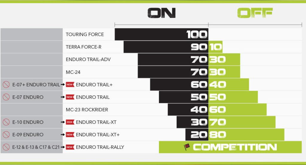 The Enduro Trail-XT+ is available TT/TL in a full range of sizes and a Dakar stiffer carcass as well. For more information, technical specs, and a complete sizing chart, visit the Mitas page.