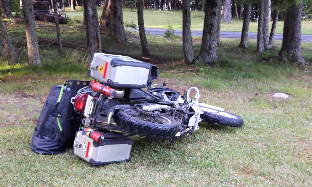It’s not that it had all been easy and good. On Day 2 the bike wouldn’t start after one of my rest stops, and there was an ugly hour of anxiety trying to figure it out. Later I discovered that the ferry I had planned to take to Deer Island, NB, was permanently closed, leaving me to find another way to get there in the fading light or change my accommodation plans. There was driving rain, and stifling heat, dehydration headaches, a bee up the sleeve, phone charging issues, navigation problems, and an unexpected oil change. Oh yeah and I dropped the bike. Twice.