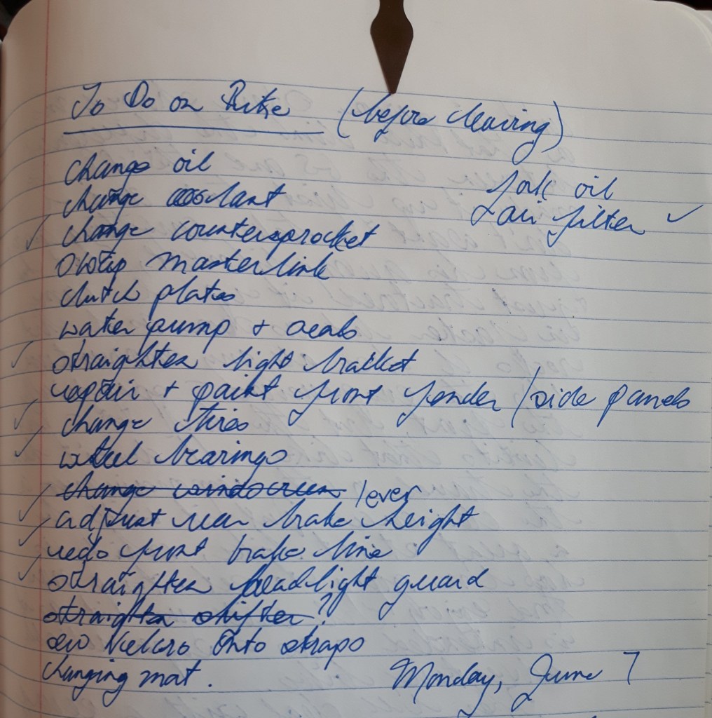 I’d been thinking of this trip since my teens, preparing for it since I bought the bike in 2015, and waiting an entire year when Covid kiboshed it last summer. Now everything hinged on whether I could get the bike running again, and I had 24 hours to do it.