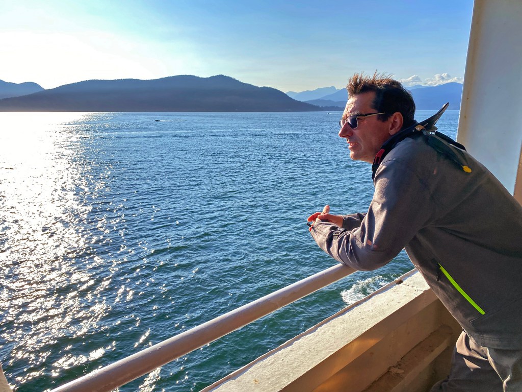 We arrived at Comox in good time but was surprised to find a single lane leading to the ticket kiosk. It was stop and go, literally, in the heat as we crept forward; the line was moving so slowly, I killed the engine and restarted a few times before we reached the kiosk. It was a bit stressful but we ended up buying our tickets with time to spare, then were directed over to the motorcycle lane where we pulled in behind a couple of grizzled ADV riders on KTMs. Yes, there’s a kind of competitiveness even among ADV riders, and their bikes, aside from being KTMs, had more mud than ours, knobbies, and soft luggage. You don’t want to stall your bike in front of them, I thought. Turns out that would not be possible because when we were signalled to board, the bike wouldn’t start.