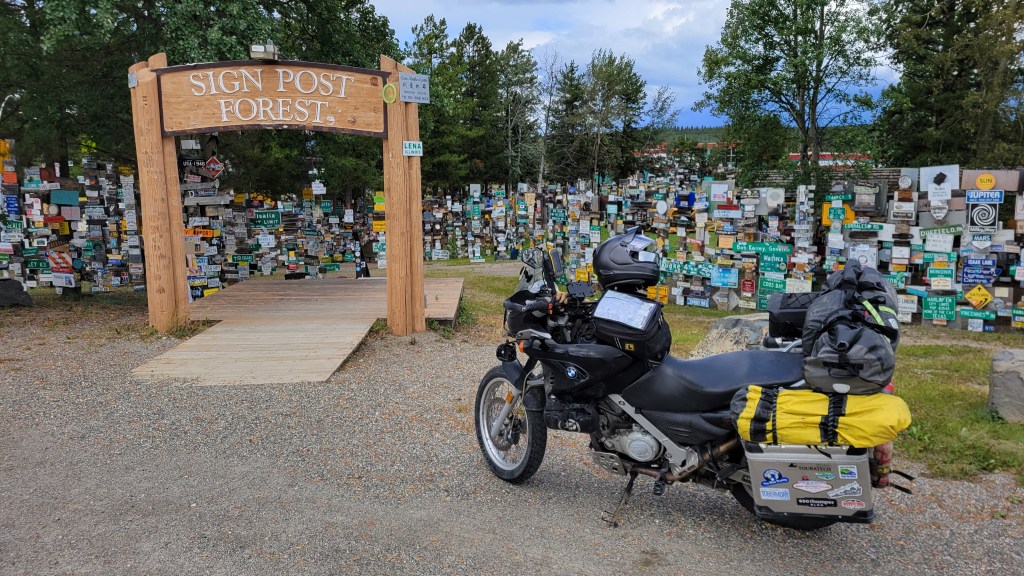 However, I was vulnerable when I went off road, particularly up The Dempster. If it had started to rain, the dirt would have turned into mud and I would have been in trouble. The problem is that there were actually two very distinct kinds of riding on this trip: largely asphalt to cover the miles, and sections of dirt or gravel when I could afford it. Ideally, I’d have shipped more aggressive off-road tires out to BC and put them on before heading north. This is exactly what many people do: ship TKC 80s to Dawson City and put them on before hitting The Dempster. A 50/50 tire like the Heidenau K60 Scout would have been another option, but the more aggressive tread on those tires is noisy on the road, despite the centre strip. (In fact, in the 650GS tire size, there is no centre strip, and the rear flattens quite quickly.) The next time I attempt The Dempster, I’ll be starting in BC and will use an off-road tire, even if it means burning through that rubber on the pavement.