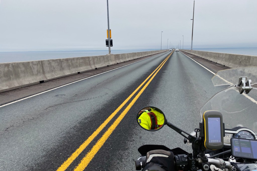 Marilyn and I left Miramichi, NB, and took the 11 south to Shediac, then the 15 east and soon we were seeing signs for the Confederation Bridge. The clever islanders don’t charge anything to get on the island, so tourists become like lobsters wandering into the trap. Once you discover what you’ve done, it’s too late, and you feel like you’re in John Carpenter’s Escape From New York: anyone who goes on the island never comes off. In fact, the fee for motorcycles was only $20.