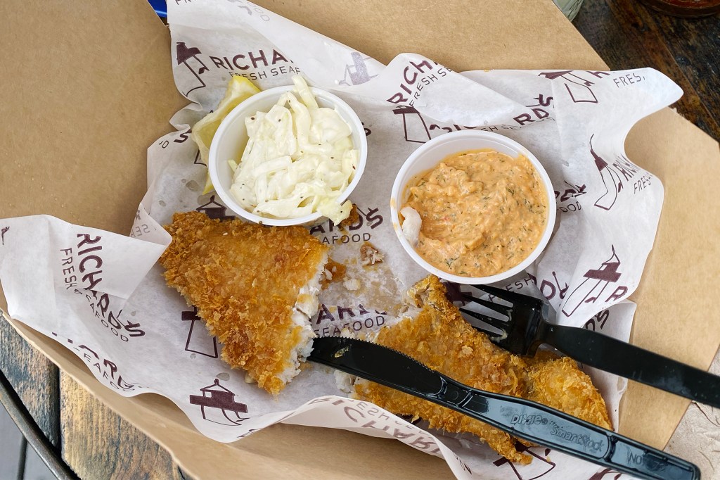 Soon we entered the picturesque village of Victoria. It had a lighthouse, a wharf, and gourmet fish & chips, so our search for the red cliffs would have to wait.