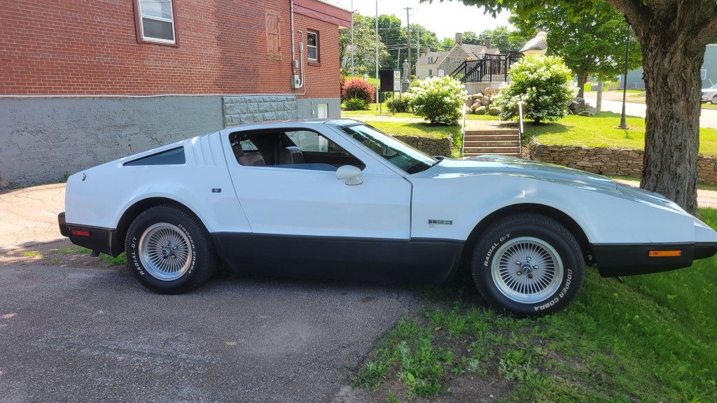 Bricklin was a Canadian car manufacturer located in Saint John, New Brunswick, in 1974-75. With the help of provincial funding, they built about 3,000 cars, but problems with reliability of the acrylic body panels and other issues drove the price up and the car company soon went bankrupt. The car has a Chrysler slant 6 engine, a Datsun tail, and other parts from Chevrolet and Opel. It’s crowning feature are the winged doors that open upwards. I got talking to a young lady out front and accidentally mistook it for a DeLorean, which must happen a lot. The DeLorean is another long-nosed, snub-tailed, winged car of yesteryear, made famous by the Back to the Future movies. This Bricklin’s in great shape, obviously without a spot of rust on it, and no blistering that plagued the early models.
