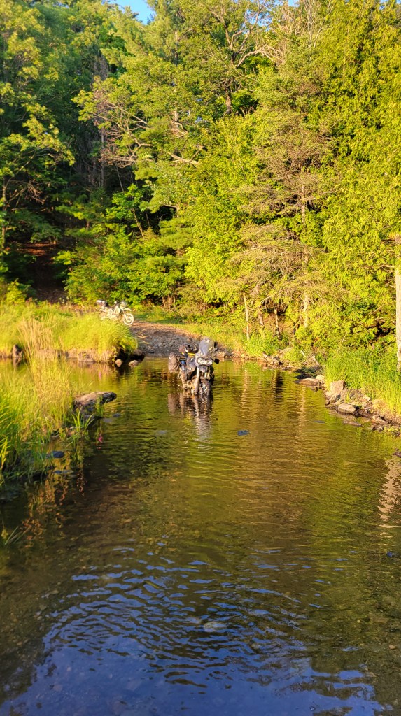 But we never made it that far. At one water crossing, I got hung up on some rocks and dumped the bike. I hit the kill switch before it dunked but the bike wouldn’t start once righted. After trying for a while, I left it sitting there while deciding what to do.