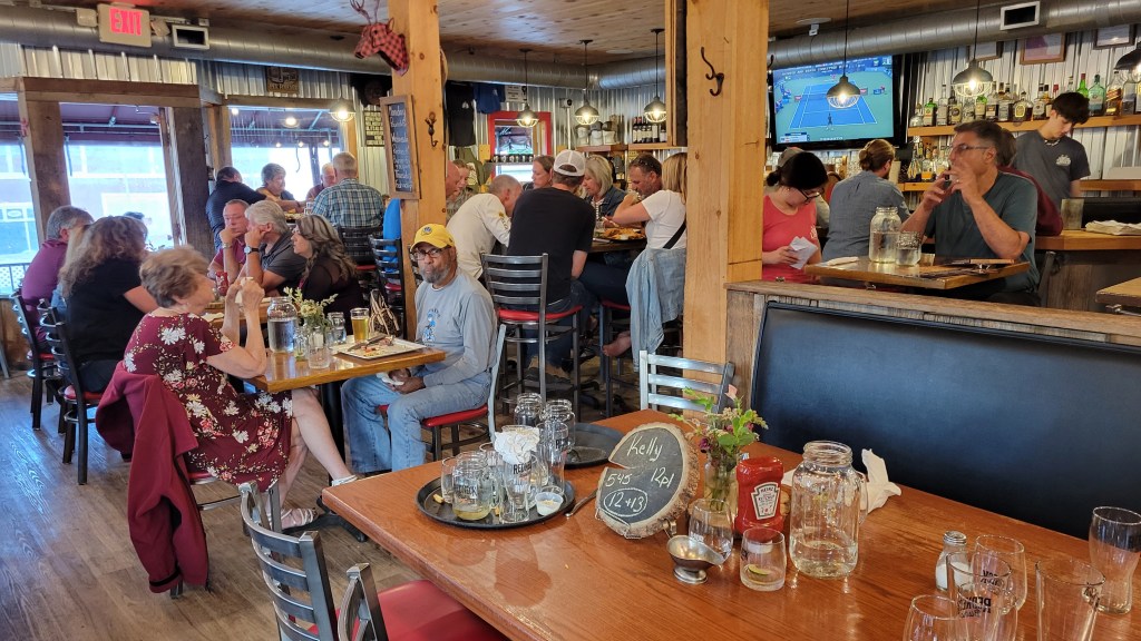 It was sunny in Calabogie but probably still raining 20 kilometres south on the trail. I didn’t feel very good about leaving my bike on the trail overnight but tried to put it out of mind. We went for dinner at The Redneck Bistro.